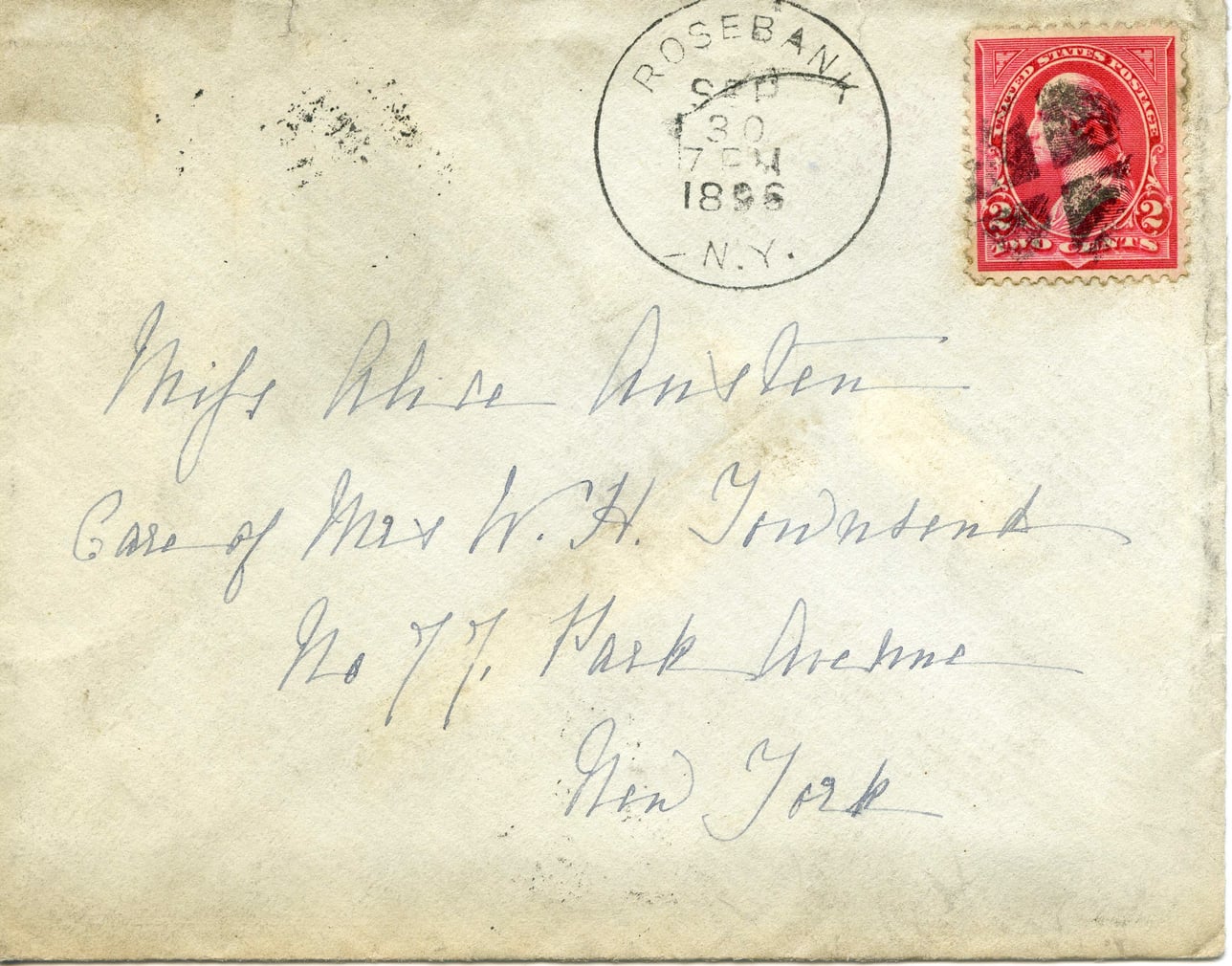 @file_pinax:file {title: "1896 Correspondence Collection", type: "Collection", creator: ["Julia Taber Martin","Alice Austen","Violet Ward","Trude Eccleston","Carolina Machar","E.D. Van Rensselaer"], institution: "Alice Austen House Test", created: @date_1896, language: "en", subjects: ["Letters","Correspondence","Santa Barbara","Staten Island","Travel","Family","Social Life","19th Century","Philately","Weddings","Health","Business"], rights: "Public Domain"}