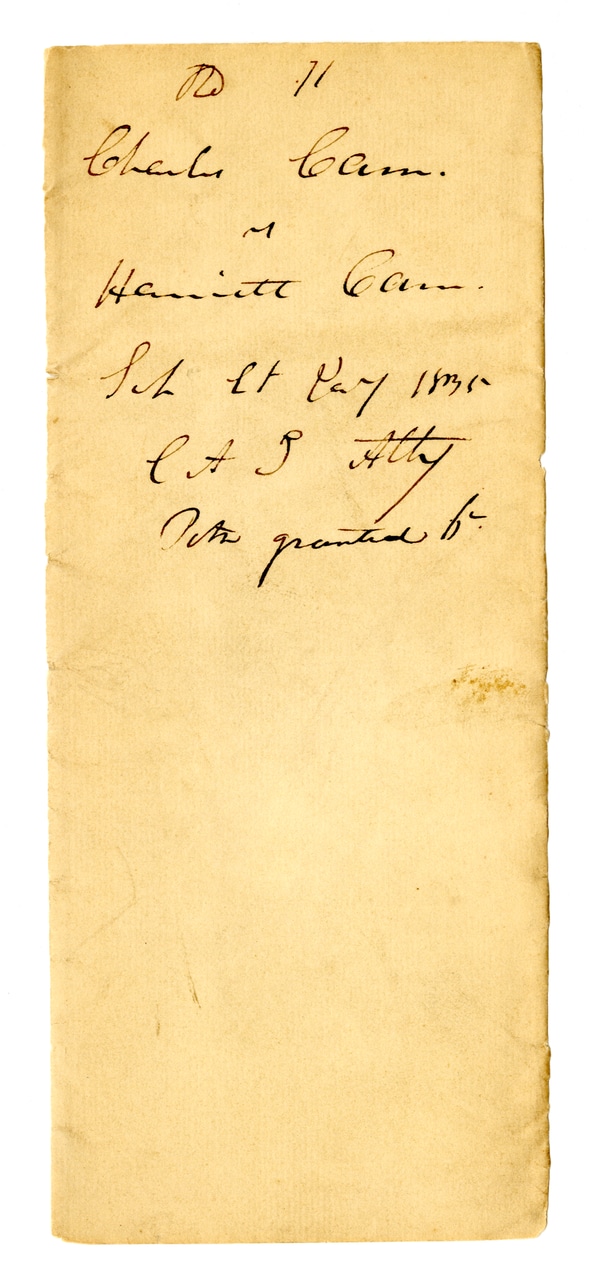 @project_nhsc_baai:project {name: "NHSC BAAI Cases Papers", description: "Project to arrange, describe, and digitize New Haven County Superior Court records focusing on Black, African American, and Indigenous history", sponsor: @connecticut_state_library, related_collection: @file_pinax}No 11 Charles Can. M Hamitt Can. St A Ct Cay 1836 C & P Atty Note granted by