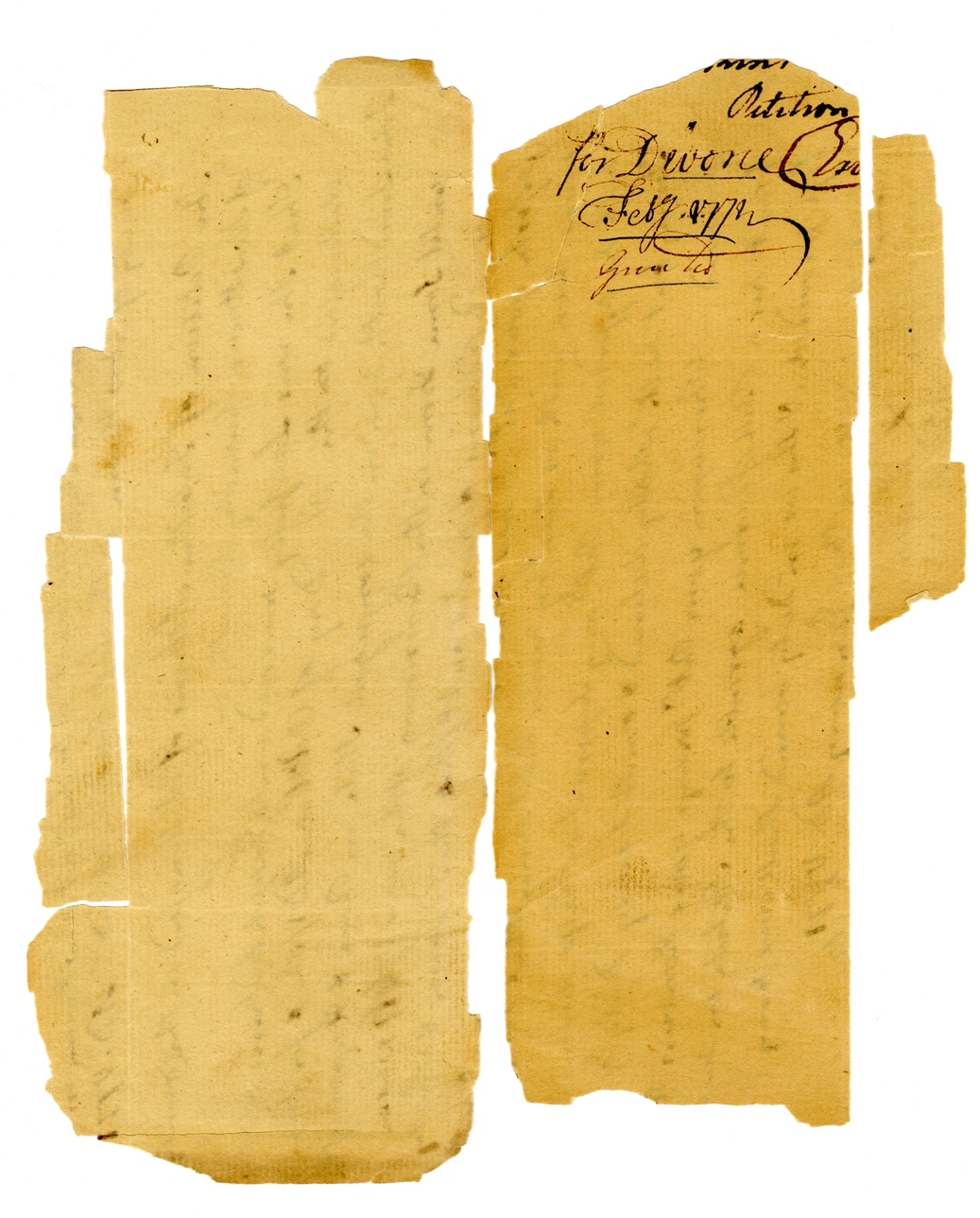 @file_rg003_nhsc_baai_ps_divorce_adkins_005_jpg -> depicts -> @adkins_divorce_petition {ocr_text: "Petition for Divorce\nFeb 9, 1774\nGreen & Co"}