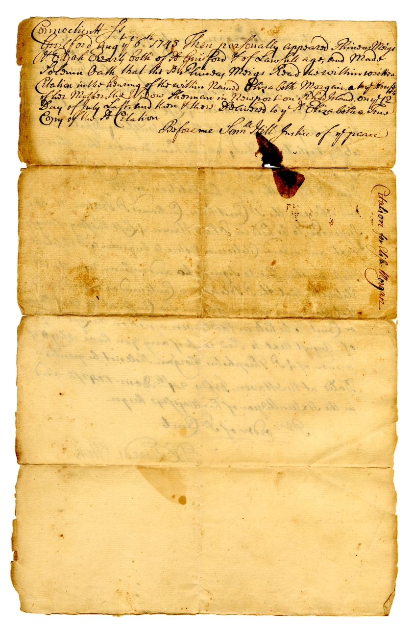 @file_pinax -> documents -> @rhode_island_oath_documents_collection:collection {title: "Rhode Island Oath Documents Collection, 1743", created: @date_1743_08_06, creator: [@phineas_moses, @sarah_eberly], institution: @connecticut_state_library, subjects: ["Oaths","Legal documents","Divorce","Newport (Rhode Island)","Chilford (Connecticut)"], place: [@newport_ri, @chilford_ct]}