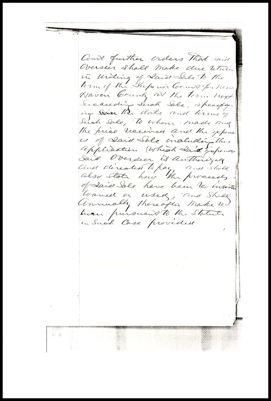 Court further orders that said overseer shall make due return in writing of said sale to the term of the Superior Court for New Haven County at the term next succeeding such sale, specifying the date and terms of such sale, to whom made and the price received and the expenses of said sale including this application (which said overseer said overseer is authorized and directed to pay) and shall also state how the proceeds of said sale have been re-invested or used, and shall annually thereafter make return pursuant to the statute in such case provided.