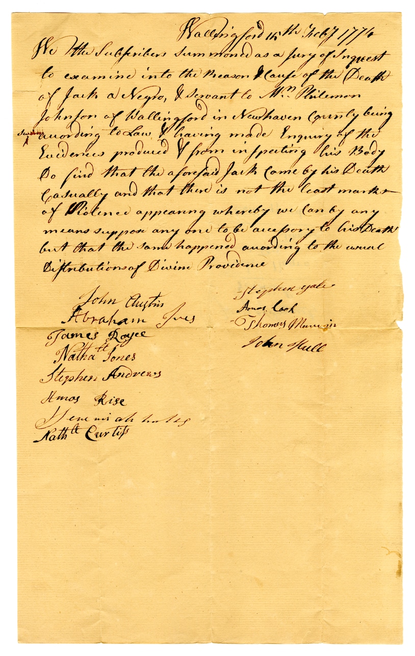 Jury of Inquest, Verdict— Jack—Negro Servant to Philemon Johnson Wallingford 1774