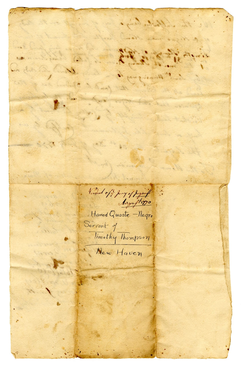 @inquest_quaste:event {title: "Inquest of Hamed Quaste, 1770", description: "Inquest documents related to Hamed Quaste, an enslaved person owned by Timothy Thompson, from August 1770 in New Haven County."}