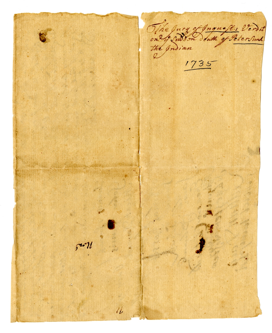 The Jury of Augusta's verdict on the sudden death of Peter Sunk the Indian 1735