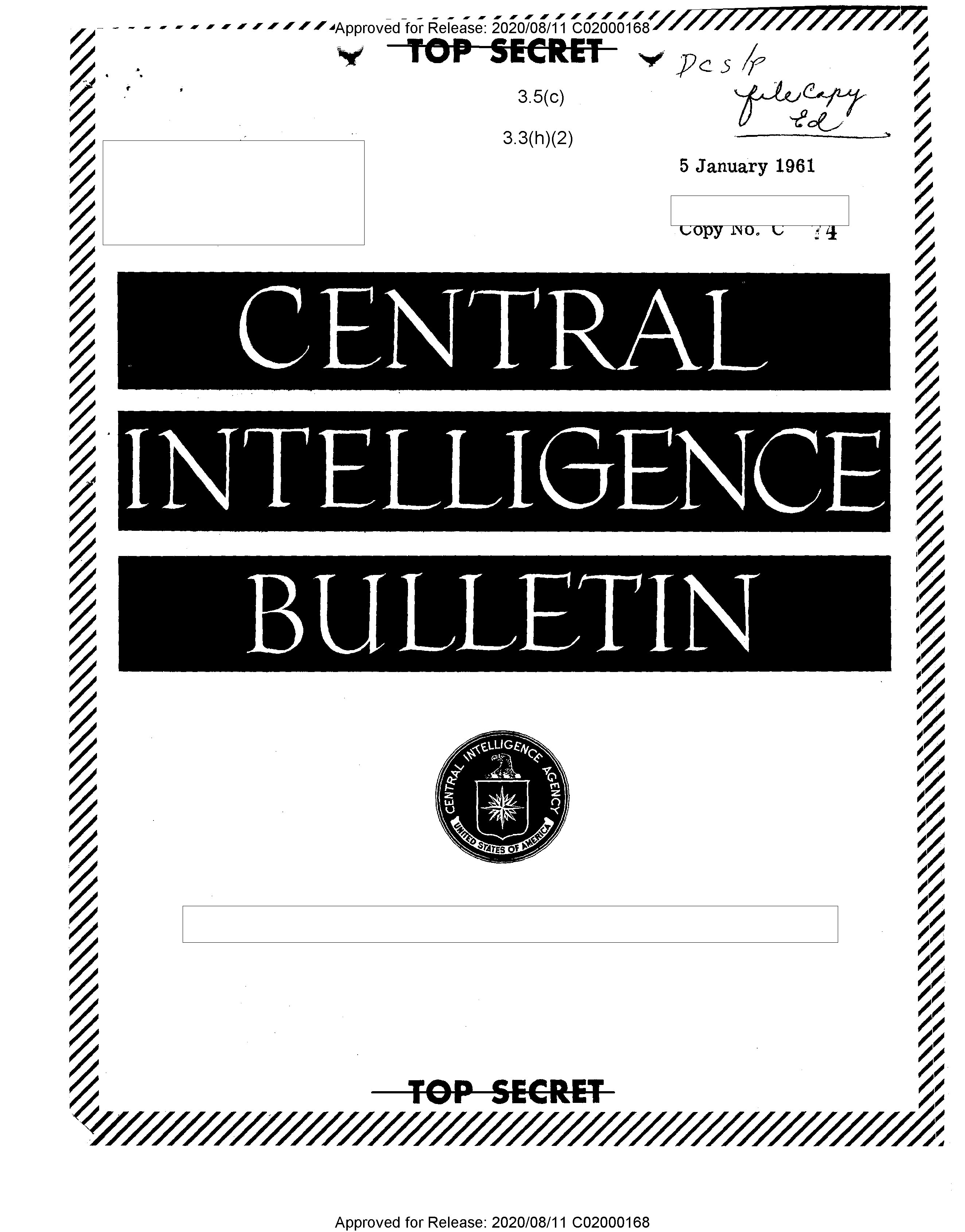 - Approved for Release: 2020/08/11 C02000168 TOP SECRET Des/p file Copy Ed 3.5(c) 3.3(h)(2) 5 January 1961 Copy No. C 24 # CENTRAL INTELLIGENCE BULLETIN  TOP SECRET Approved for Release: 2020/08/11 C02000168