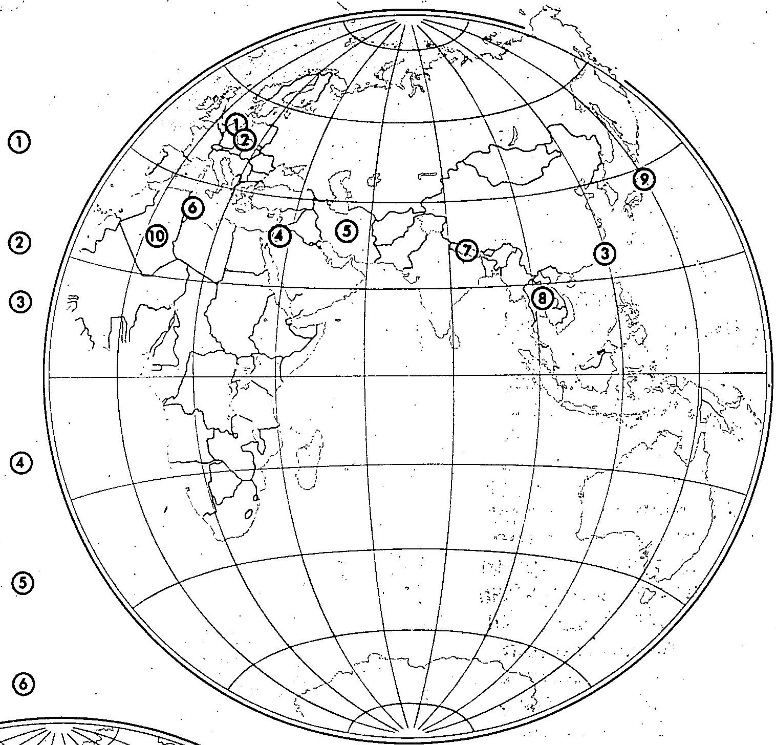 - This image is a black and white map depicting parts of the Northern Hemisphere, specifically Europe, Asia, and Africa, with numbered points highlighting various locations. It was extracted from [Page 3](arke:01KK2FTQGJPKPQQEWKRY92V3XH) of a 'SECRET' document dated 12 November 1958, which is part of the [CIA Test - March 6](arke:01KK2FMPQS3KX59D7G345X3DZD) collection. The numbered locations on the map correspond to specific geopolitical events and situations detailed in the accompanying text on [Page 3](arke:01KK2FTQGJPKPQQEWKRY92V3XH), which outlines intelligence assessments related to 'I. THE COMMUNIST BLOC', 'II. ASIA-AFRICA', and 'III. THE WEST'. Specific points on the map illustrate: * **3:** The Taiwan Strait, concerning a potential Communist abolition of a cease-fire. * **4:** Iran, relating to an alleged Soviet-organized campaign to overthrow the regime. * **6:** Tunisia, regarding a temporary rejection of British and American arms offers. * **7:** Nepal, where the King set the first national elections. * **8:** Thailand, concerning Marshal Sarit's potential assumption of the premiership. * **9:** Japan, facing a crisis over a police bill that might weaken the Kishi government. * **10:** Algeria, where De Gaulle suffered a setback in desired candidates failing to file. Points 1, 2, and 5 are also marked on the map, likely representing other areas of interest mentioned in the document, such as Soviet short-range guided-missile units in East Germany or other Communist Bloc activities.