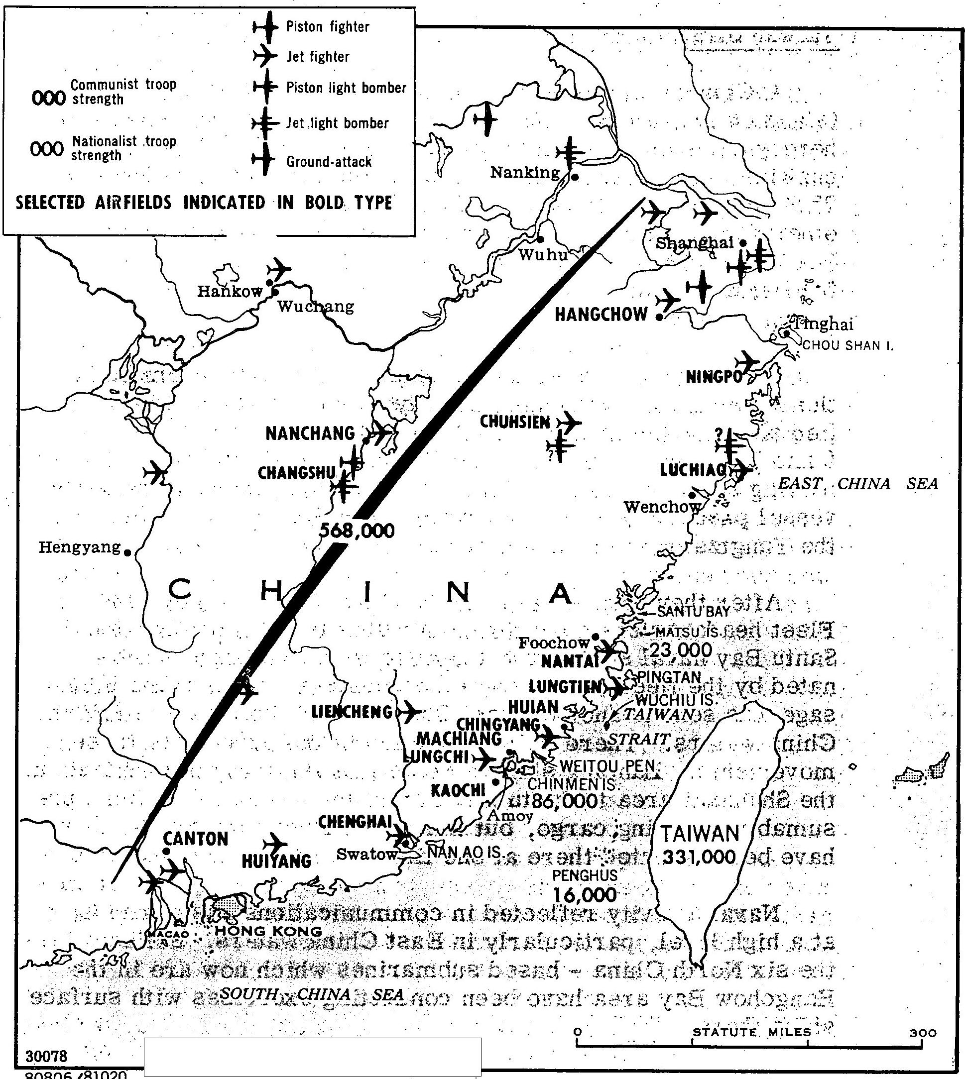 - Map of Coastal China and Taiwan: Military Airfields and Troop Strengths