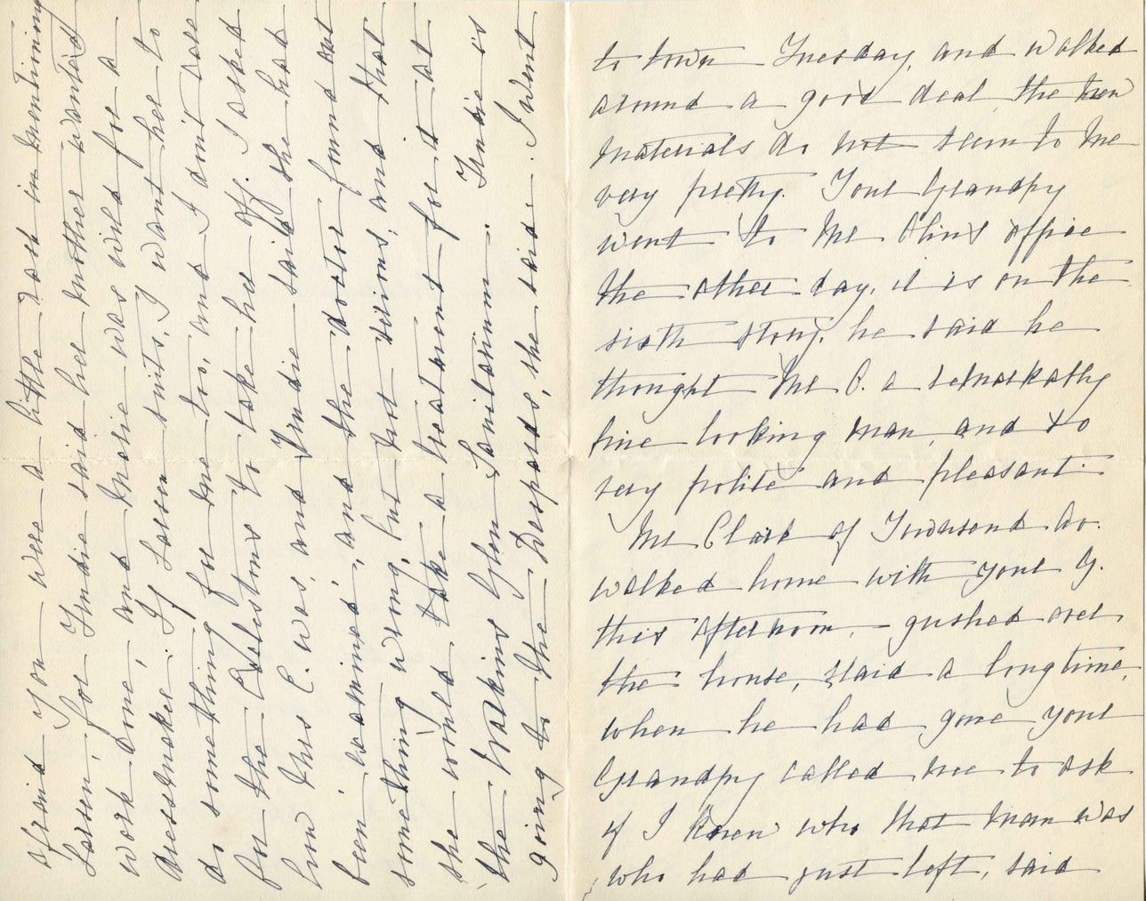 @j_osgood_nichols -> arranged -> cards {recipients: [@alice_austen, @mrs_richards], destination: @beck, related_event: @pudding_spread, purpose: "thank the Gym"}Afraid you were a little 2d & the remaining Lotion, for Freddie said her mother wanted work done, and Mother was wild for a dressmaker. If Lorna hurts, I want her to do something for me too, and if Aunt Sallie for the clothespins to take her off. I asked how Mrs C. was, and Freddie said she had been 'examin'd', and she 'doesn't' find'd that something wrong, but felt 'sickened' and that she would take a treatinent for it at the hospital Glen Stantionn. She's be 'v' going to the Pepsords, the Lord. I didn't to know Tuesday, and walked around a good deal, the town materials as well, them to me very pretty. Your Grandpy went to the third office the other day, it is on the sixth street. He said he thought Mr O. S. definitely fine looking man, and so very polite and pleasant. Mr Clark of Hudson. Dr. walked home with your G. this afternoon, gushed over the house, stayed a long time, when he has gone your Grandpy called me to ask if I knew who that man was who had just left, said