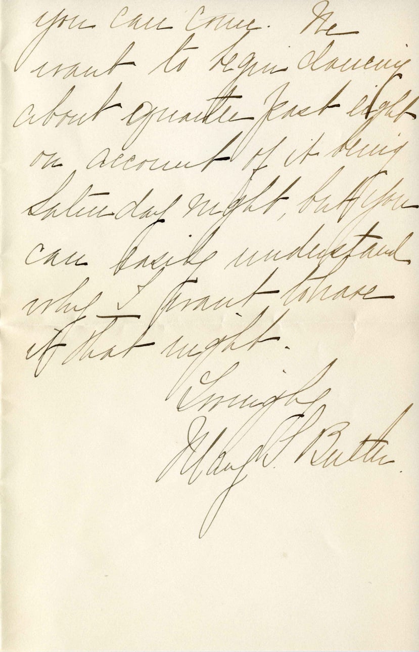 you can come. We want to begin drawing about quarter past eight on account of it being Saturday night, but you can easily understand why I cannot share it that night. Ever truly, Margaret Butler
