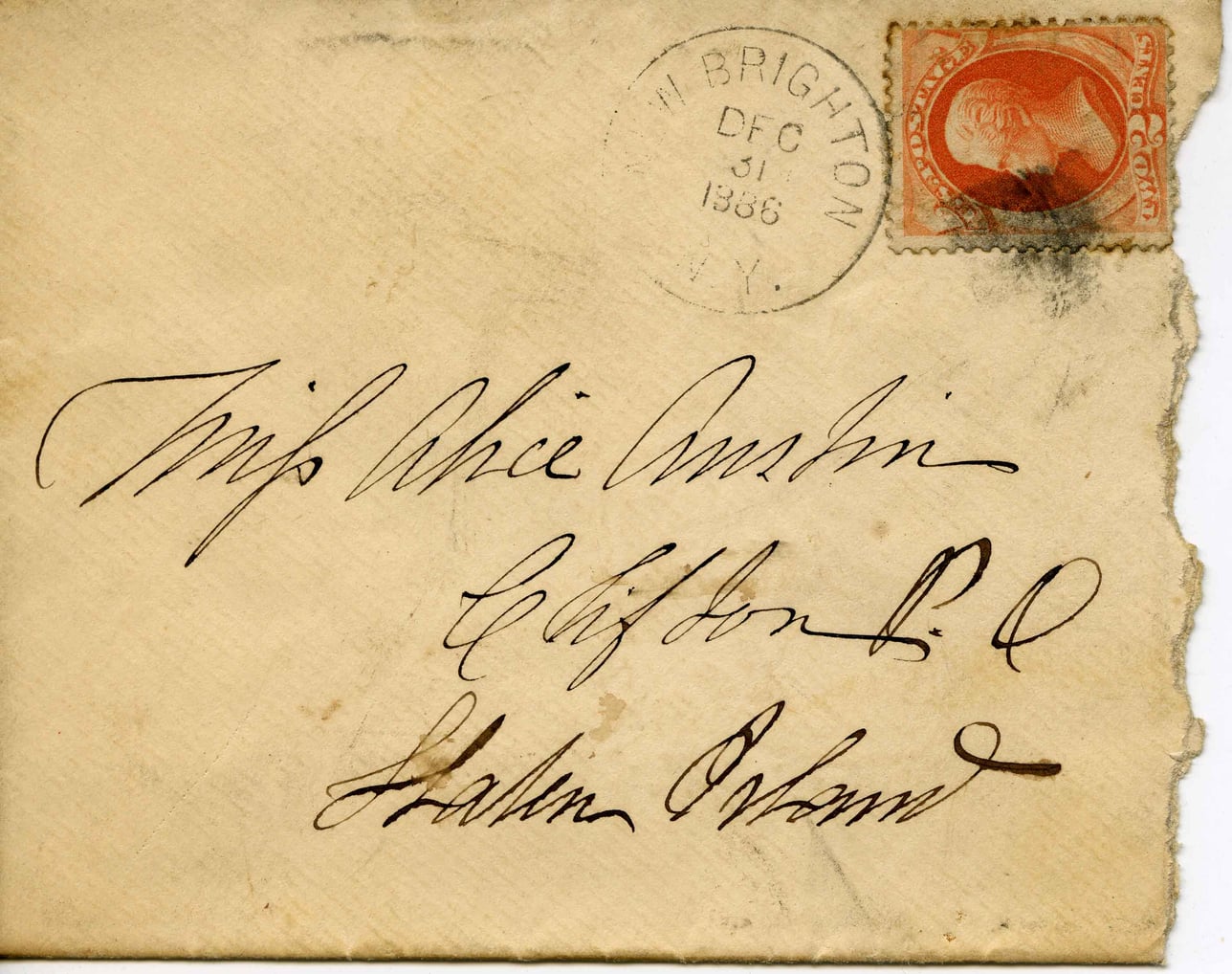 @letter_dec_31_1886_telfair1:document {date: @date_1886_12_31, recipient: @alice_austen, location: @saline_oregon, ocr_text: "Miss Alice Austin\nClifton P.O.\nSaline, Oregon"}