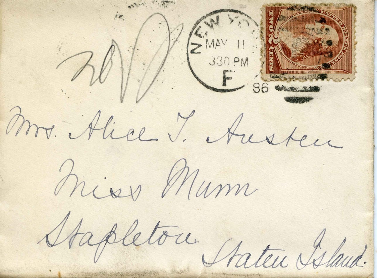 Miss Alice Austin Care of Mr. F.H. Austin Staten Island N.Y.