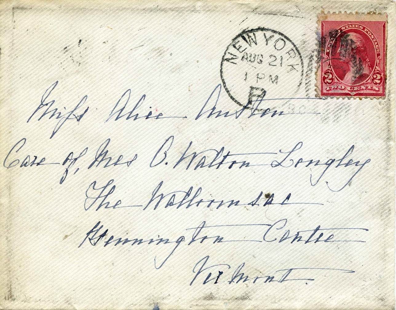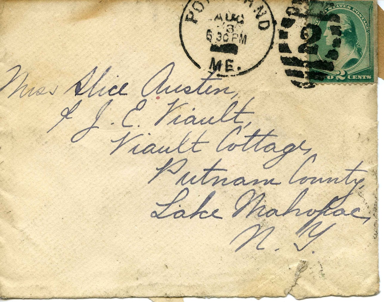 @alice_austen_correspondence_envelopes_and_addresses -> includes -> @file_1890_8_21_aug_3001_aca_copy_jpgMiss Alice Austin, & J. E. Viallt, Viallt Cottage, Putnam County, Lake Mahopac, N.Y.
