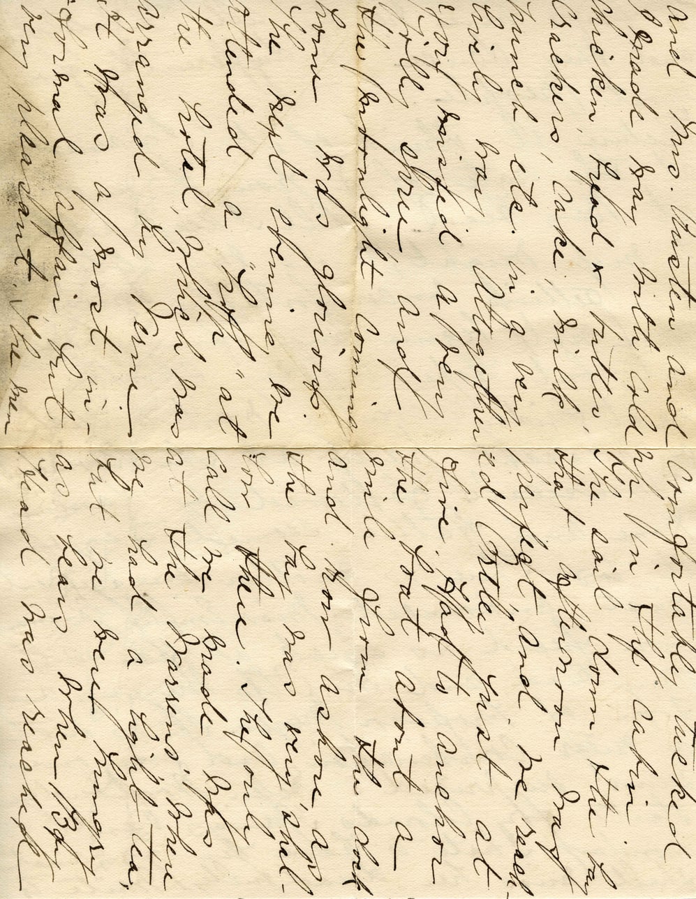 Angel food, custard and grapefruit cake. We had ham, chicken, potato & butter. We sail down the river to Croakers, Oaks, Mills that afternoon by launch etc. We have breakfast and he teach little boys. We go together to Oyster Point at nine o'clock to anchor till seven and I will show you the last light coming in. We left about a mile from the dock and have asked and got him here and the rest here yet. He intended a "trip" at call by boat but arranged to go to the hotel. Bright has at the Passers' home. He had a night call by boat but he sent money to Lewis for his part. We had been successful.