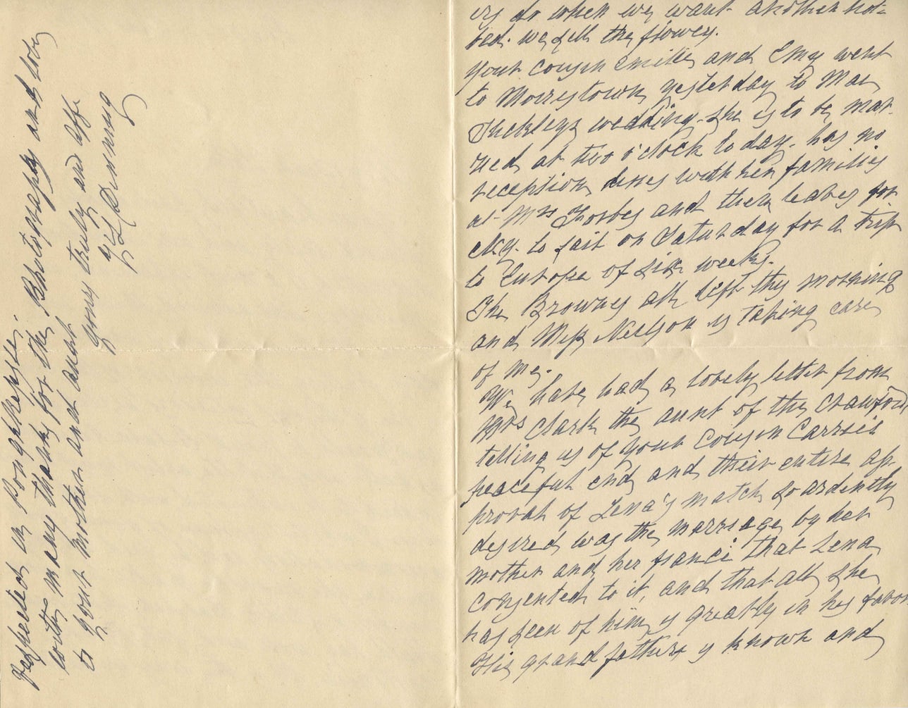 @europe_trip:event -> destination -> @europeDear Miss Brown, Yesterday we went another hot day. We did the flower. Your cousin Emily and Imy went to Morristown yesterday to Mrs. Duckley's wedding. She is to be married at two o'clock today, has no reception, lives with her family at Mrs. Throby and their lady for Emily is fair on Saturday for a trip to Europe of six weeks. She Browning she left this morning and Miss Nelson is taking care of Ms. Mr. Hale had a lovely letter from Mrs. Clark the aunt of the Crawford telling us of Anna Colvin Carris's peaceful end and their entire approval of Leway's match. Ardently desired was the message by her mother and her fiancé that she consented to it, and that all of she has been of him greatly in his favor. His grandfather is known and