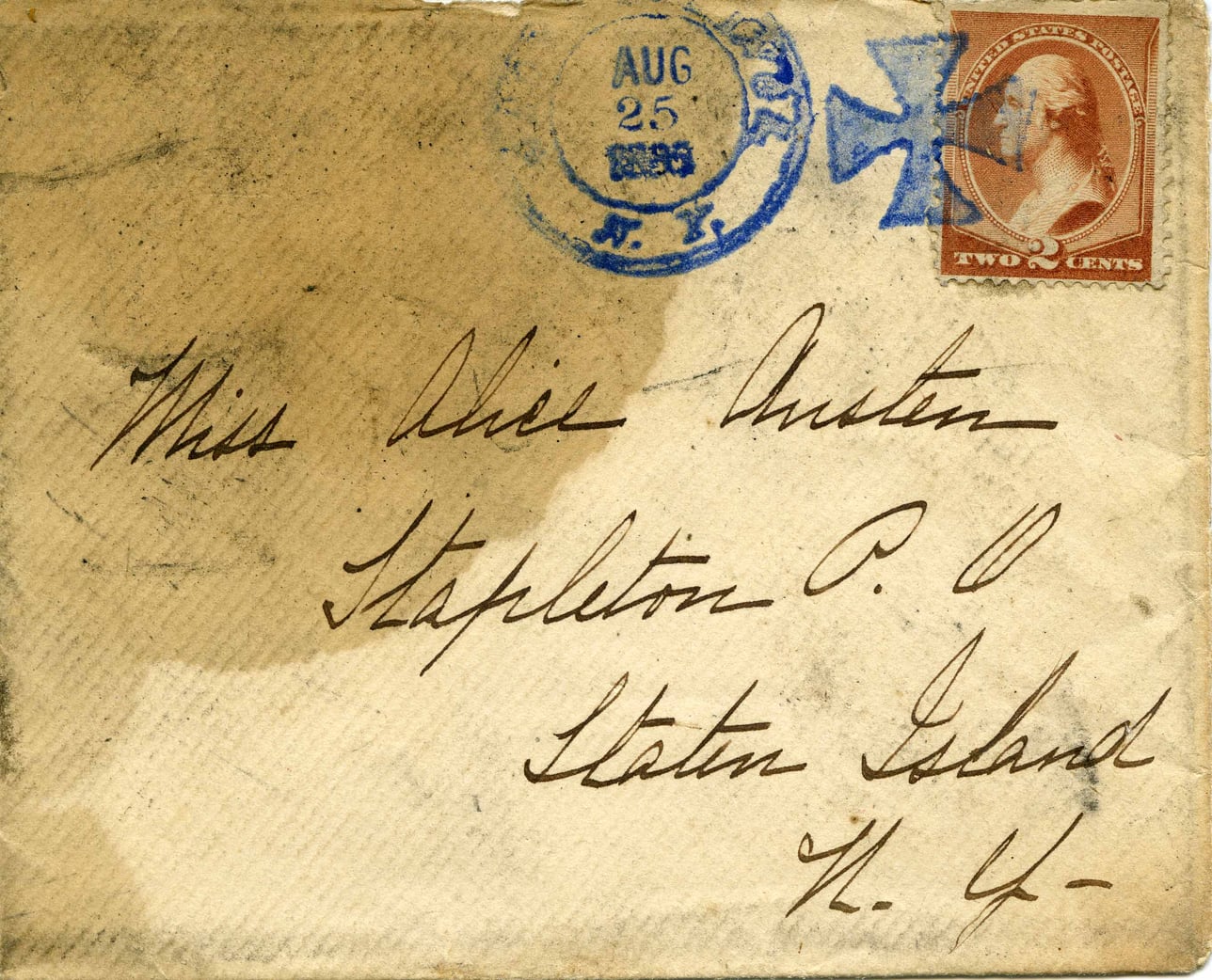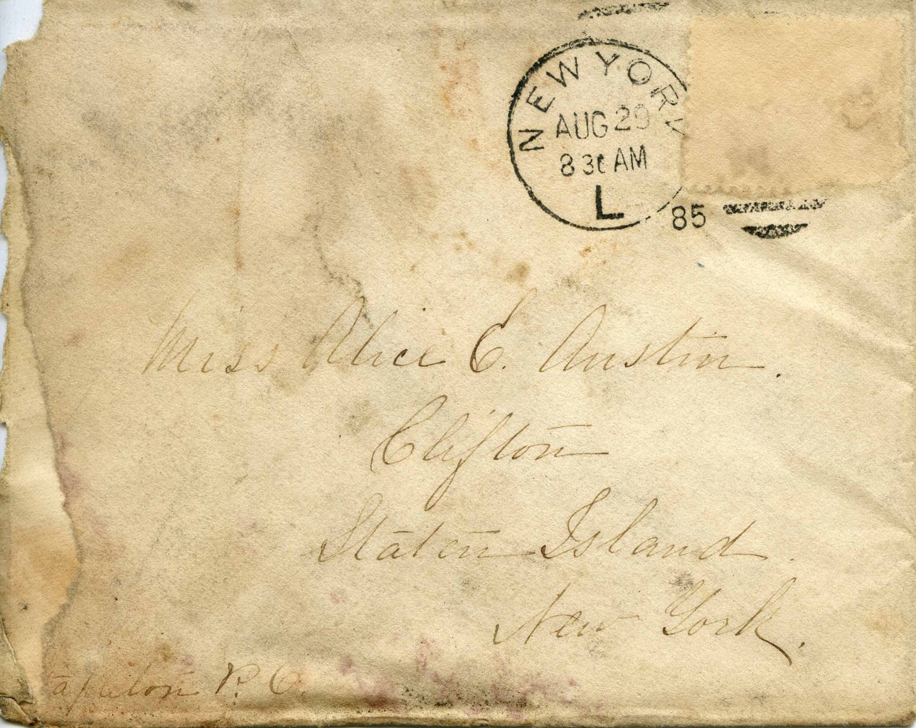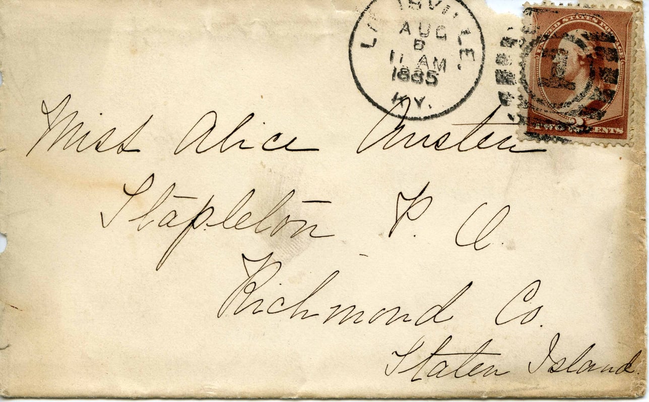 Miss Alice Huston Stapleton P.C. Richmond Co. Staten Island L.I. AUG. 11 AM 1885 N.Y.