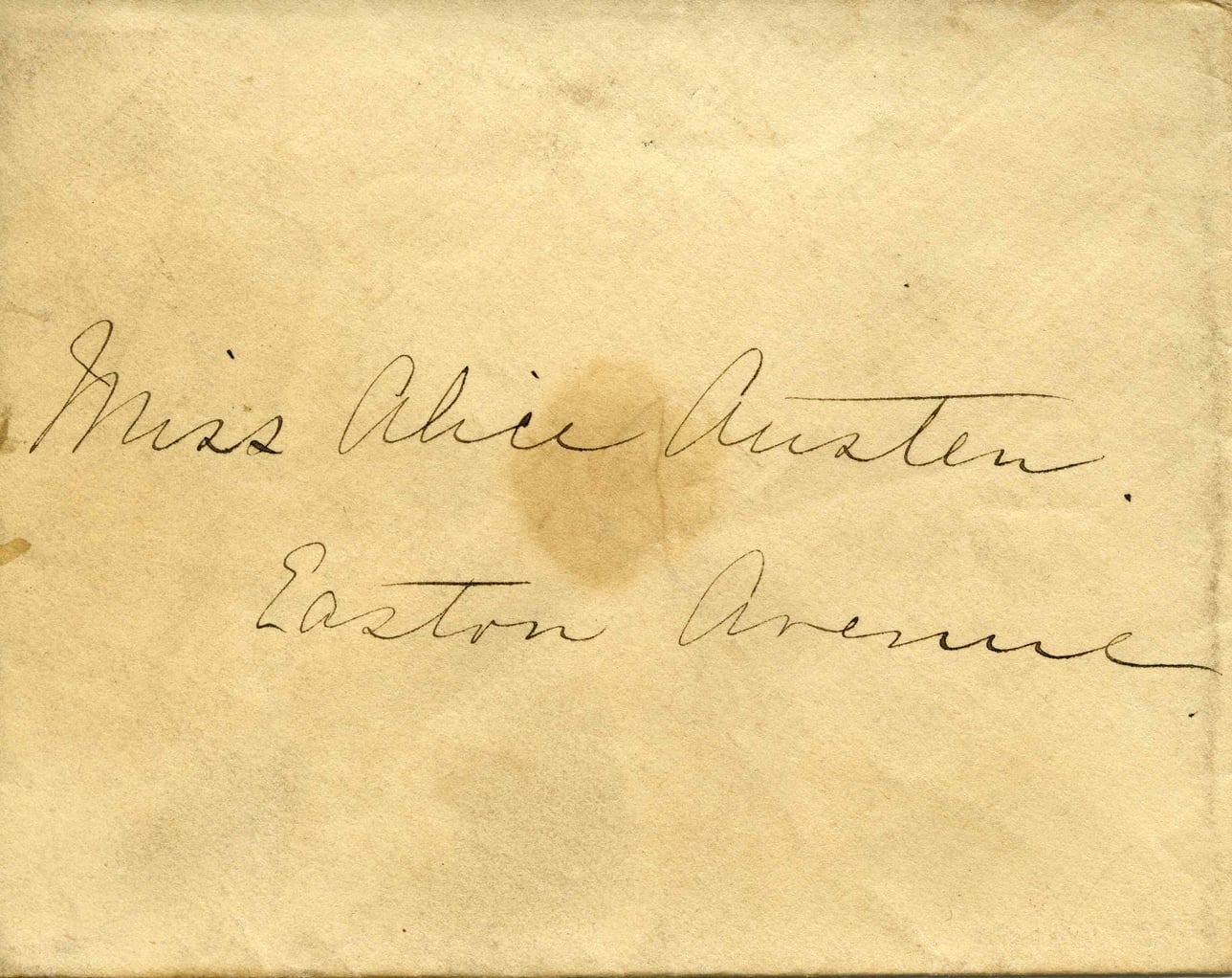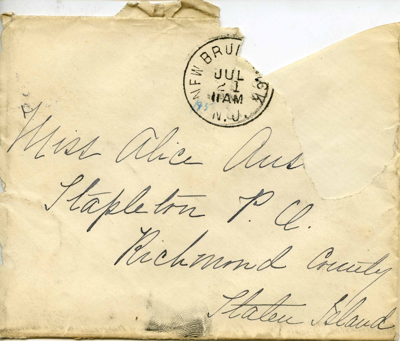 Miss Alice Austin c/o Dr. P. J. Austin New Brunswick New Jersey