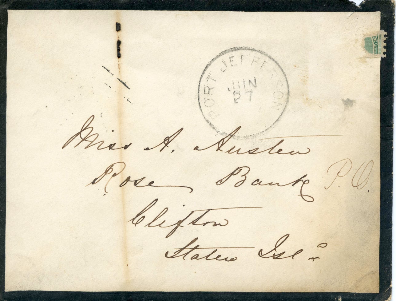 @albany_new_york:place {city: "Albany", state: @new_york, country: @united_states}Miss A. Austen Rose Bank P.O. Clifton States Isl.