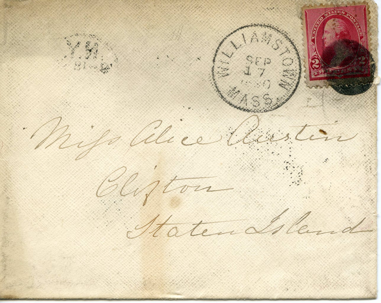 @letter_1890_sept_1001:document {author: @julia_martin, recipient: @alice_austen, when: @date_1890_09_01, location: @staten_island, content: "Miss Alice Austin Clinton Staten Island"}