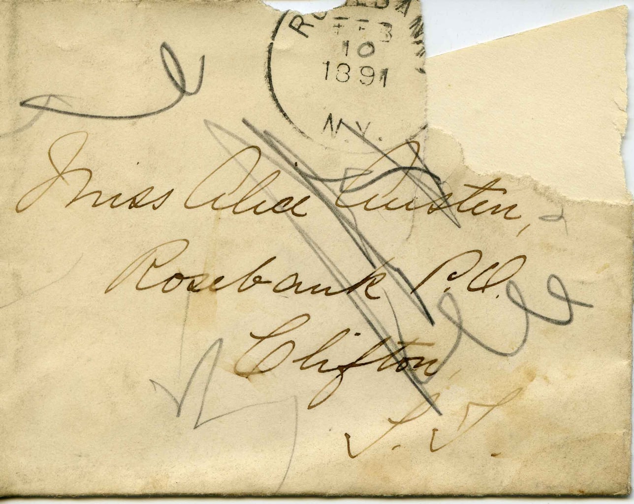 Miss Alice Custer, Rosebank P.O. Clifton N.J.
