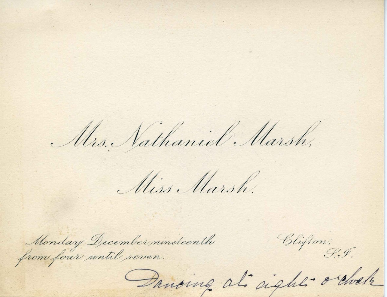 @file_1892_12_2_delta_chapter_002_copy_jpg -> documents -> @invitation_1892_12_02Mrs. Nathaniel Marsh. Miss Marsh. Monday December nineteenth from four until seven. Clifton. P.T. Dancing at eight o'clock
