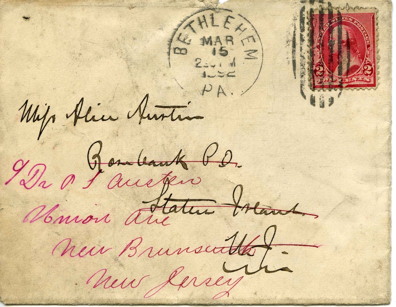 @file_1892_3_24_march_11003_booth_copy_jpg -> sent from -> @staten_island_ny {when: @date_1892_03_24}Miss Alice Austin Rosebank P.O. 9 Da O I austen Union Ave New Brunswick New Jersey
