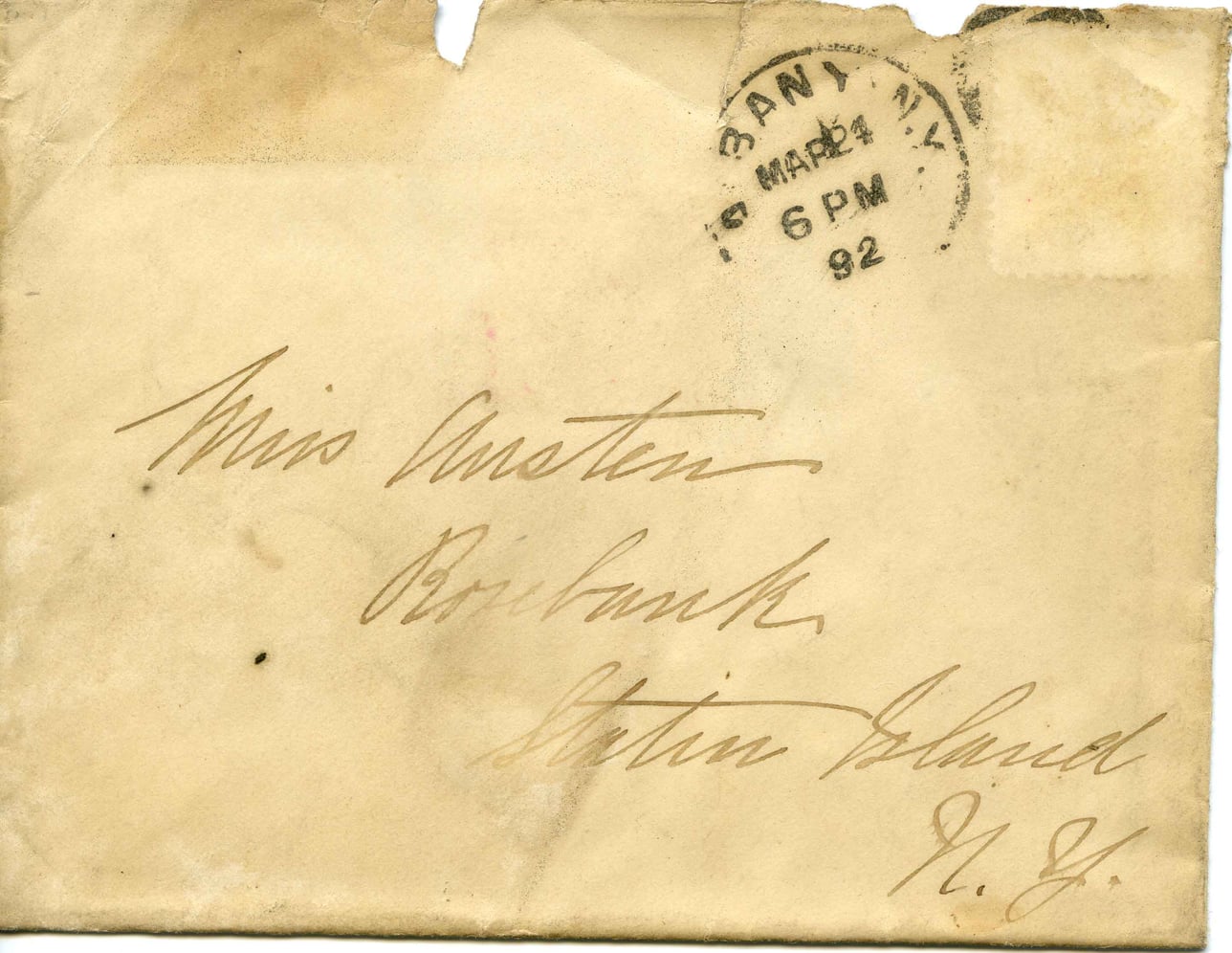 @alice_austen_julia_martin_correspondence:document {created: @date_1892_03_21, description: "Collection of correspondence between Alice Austen and her close friend Julia T. Martin, discussing social activities, personal news, and local events in Staten Island.", subjects: ["Correspondence","Social life","Victorian era","Staten Island","Friendship"], language: "en"}