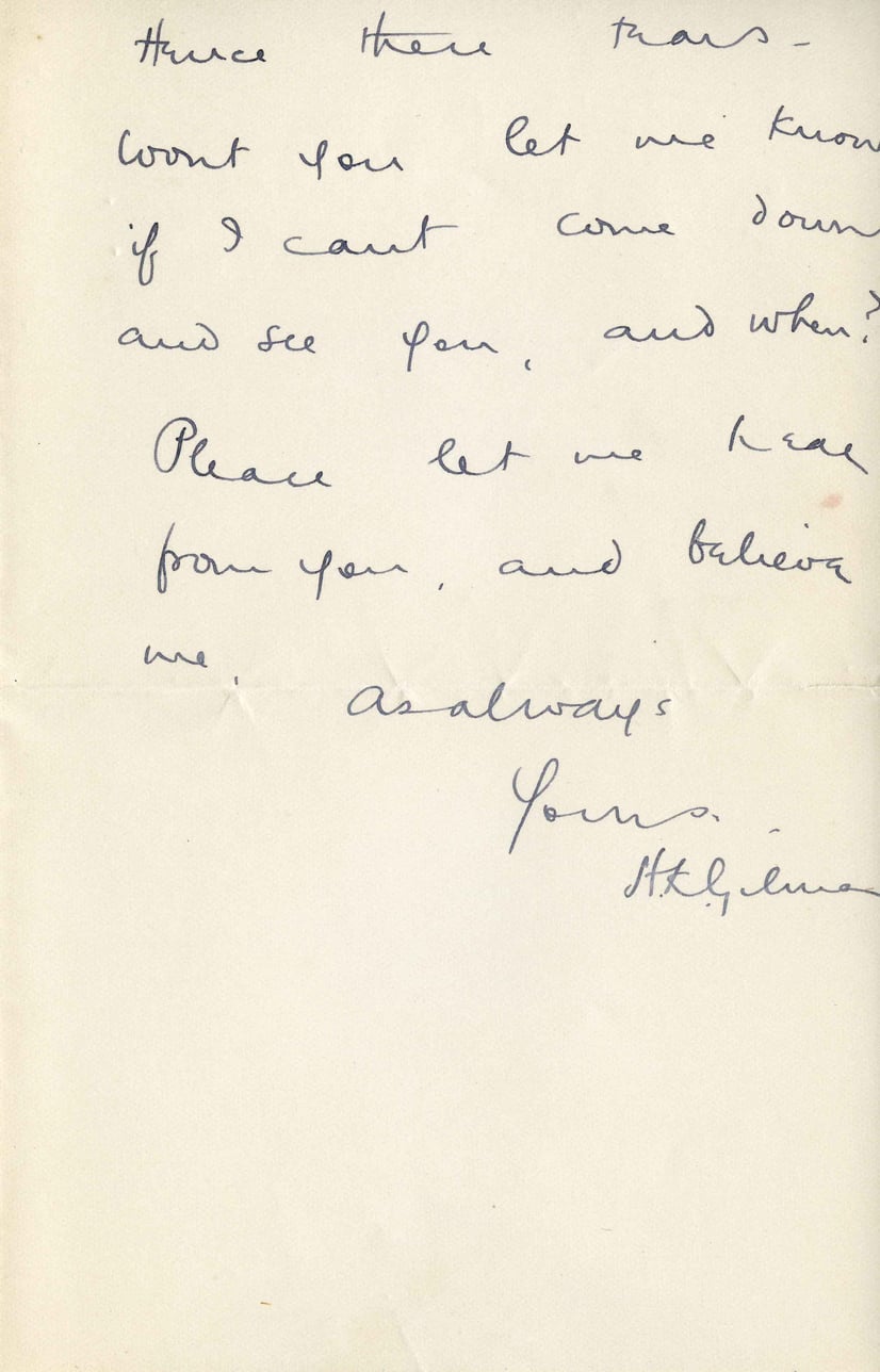 Hence these trans- lators you let me know if I can't come down and see you, and when? Please let me hear from you, and believe me. As always, Yours, H.H. Gilmore