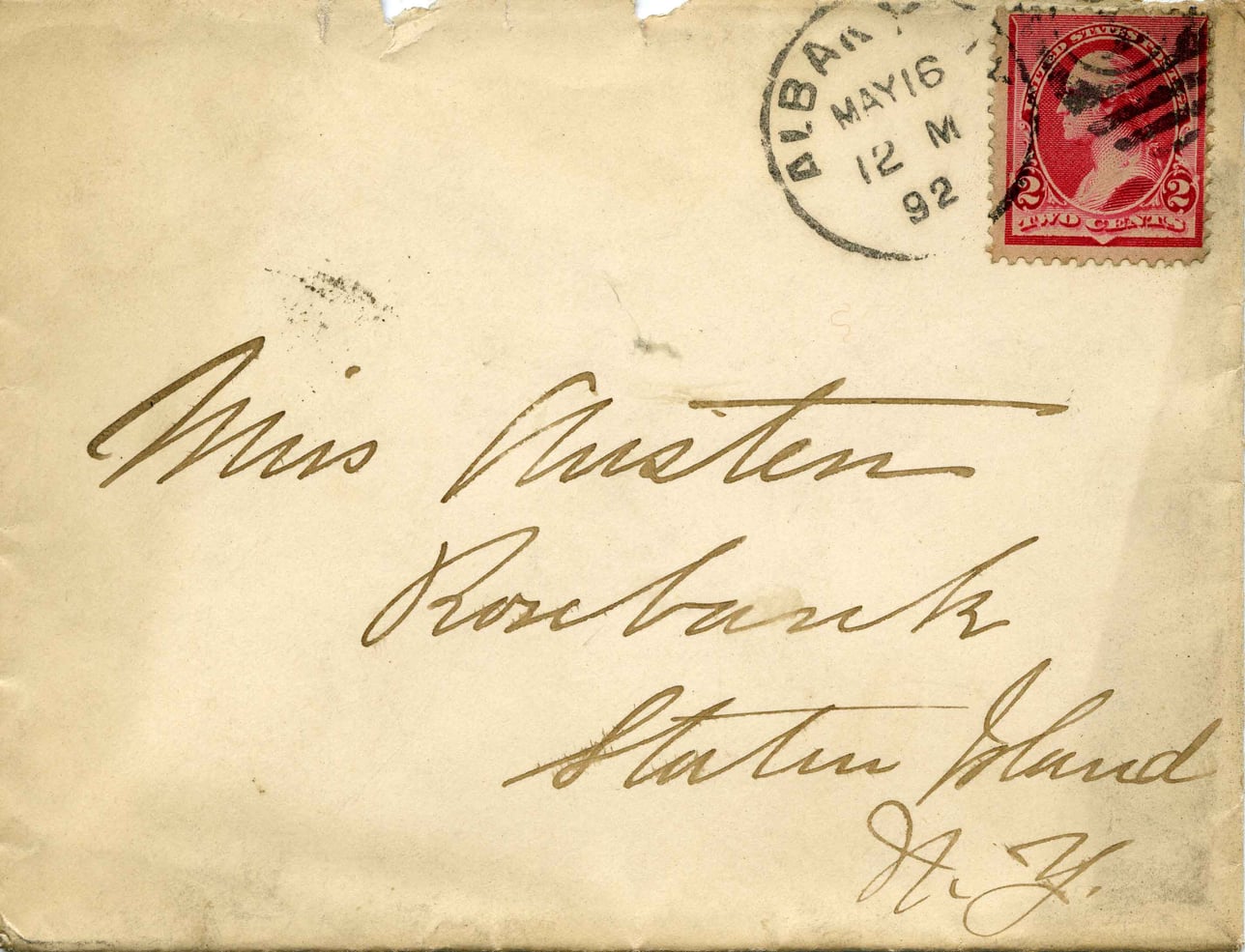 @file_pinax:document {title: "Alice Austen and Julia T. Martin Correspondence Collection, 1892", creator: [@alice_austen, @julia_t_martin], institution: "Alice Austen House", created: @date_1892, language: "en", subjects: ["Correspondence","Personal letters","Social life","Victorian era","Family relationships","Albany (N.Y.)","Bennington (Vt.)","Staten Island (N.Y.)"], place: [@albany, @bennington, @staten_island]}