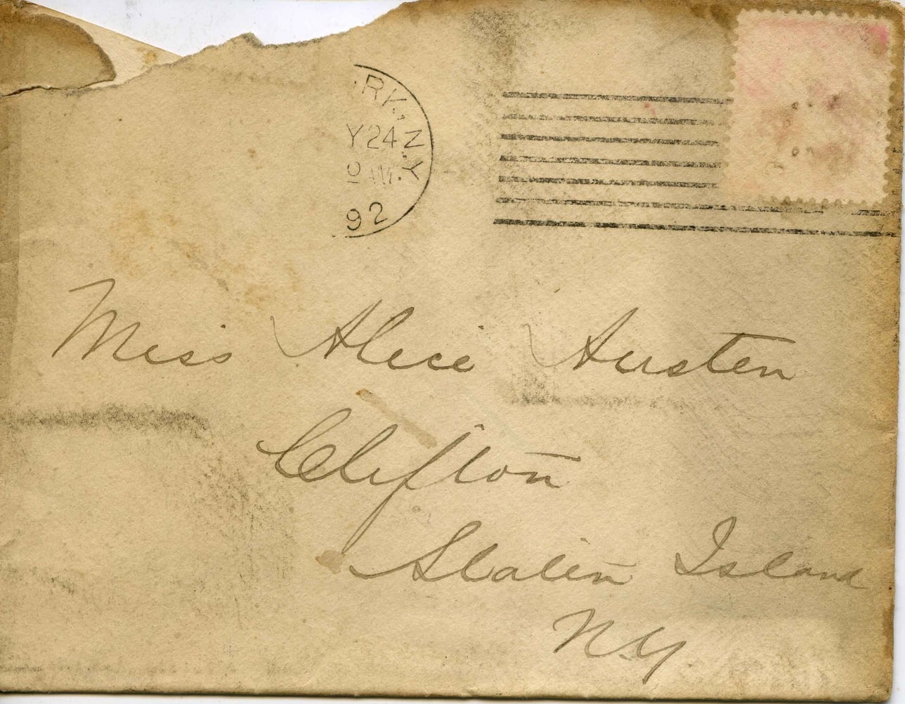 @alice_austen -> invited -> @charles_b_hurd {when: @date_1892_05_23, via: @alice_austen_correspondence_with_charles_b_hurd}Miss Alice Austen Clifton Staten Island N.Y.