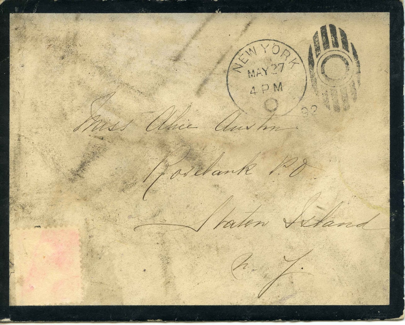 @letter_may_27_1892 -> mentions -> @alice_austen {relation: "mother"}Miss Alice Austin Postbank Rd. Staten Island h. J. NEW YORK MAY 27 4 PM