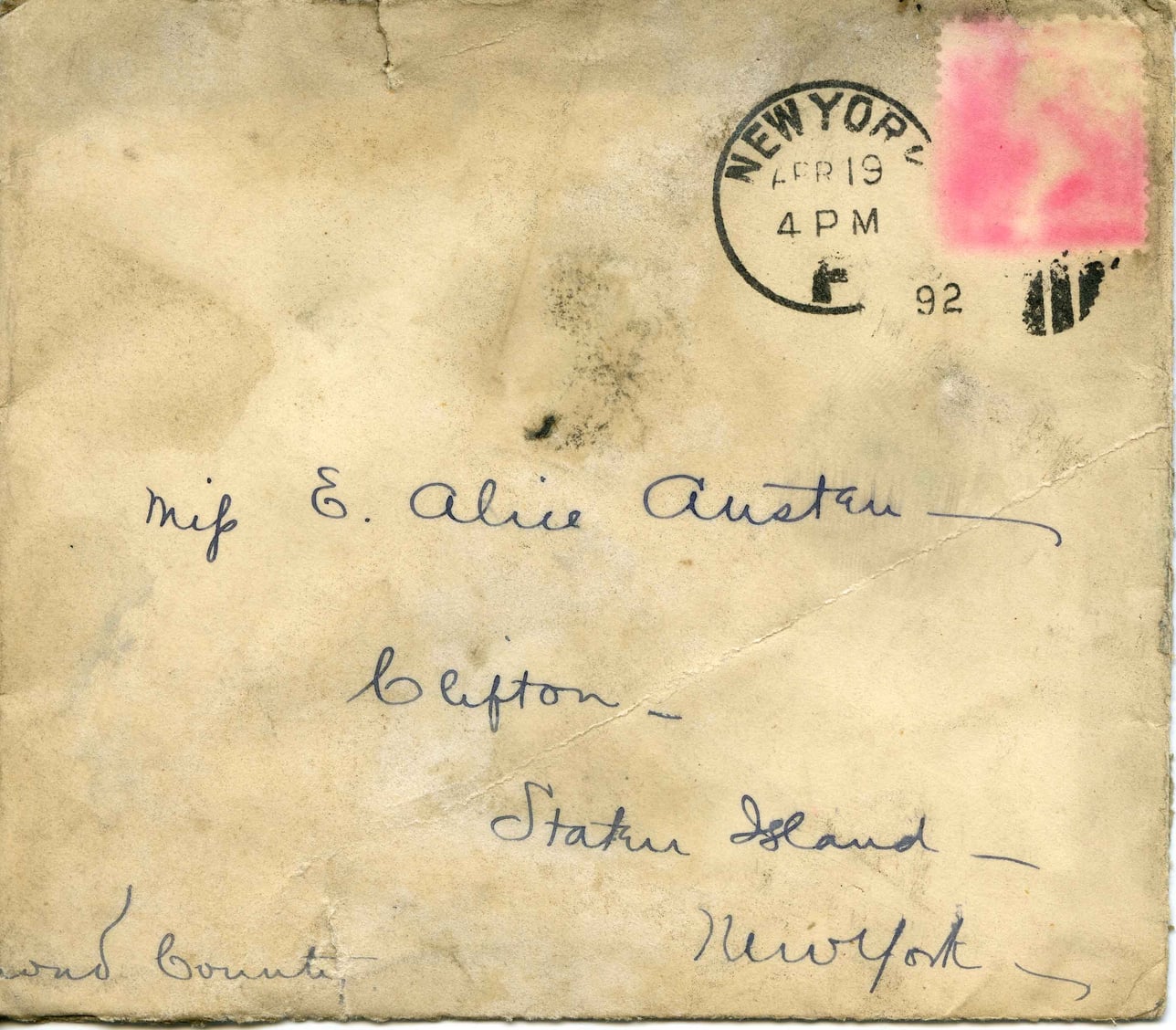 @file_1892_4_19_april_8001_hkg_copy_jpg:file {type: "image", ocr_text: "Miss E. Alice Austin\nClifton -\nStaten Island -\nNew York"} {date: @date_1892_04_19}