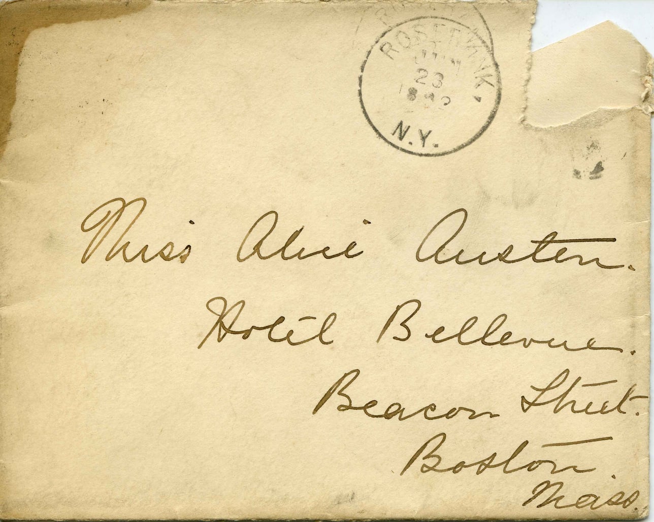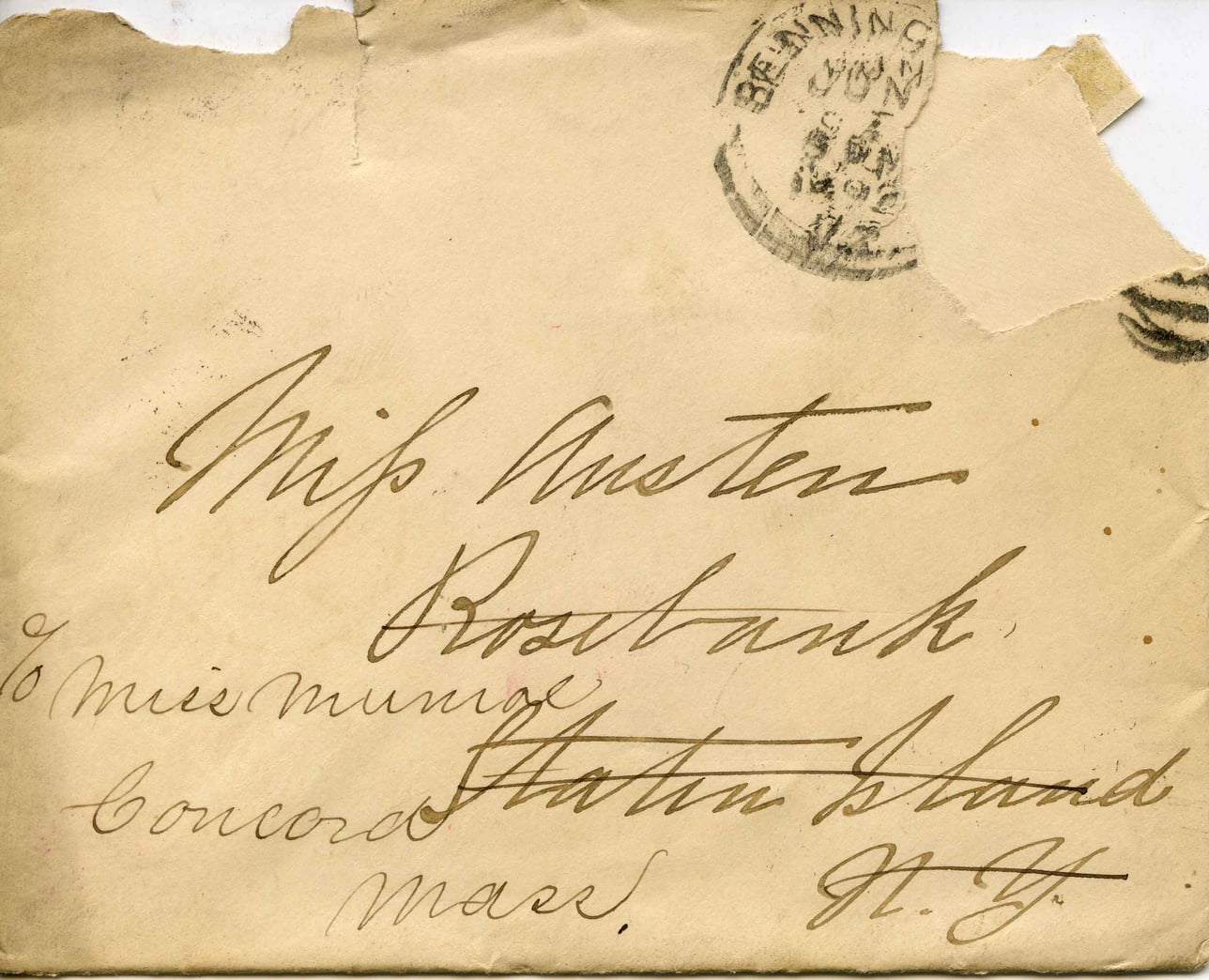 Miss Austen Roselbank To Miss Munroe Concord Station Island Mass. H.Y.