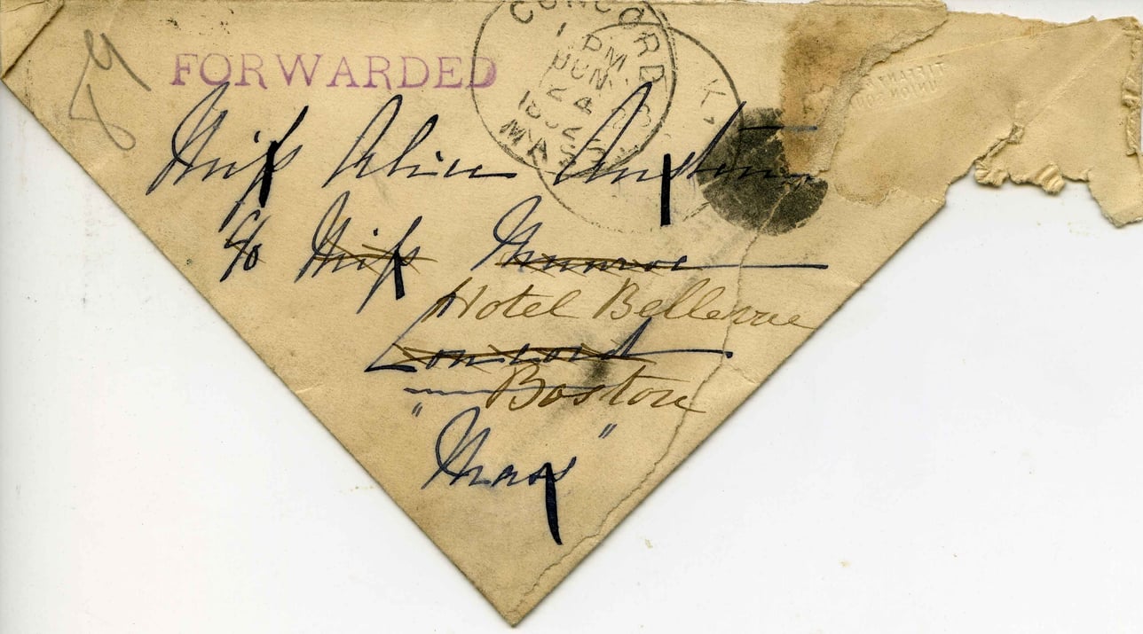 FORWARDED Miss Alice Anthony To Miss Gertrude Hotel Bellevue Boston Mary