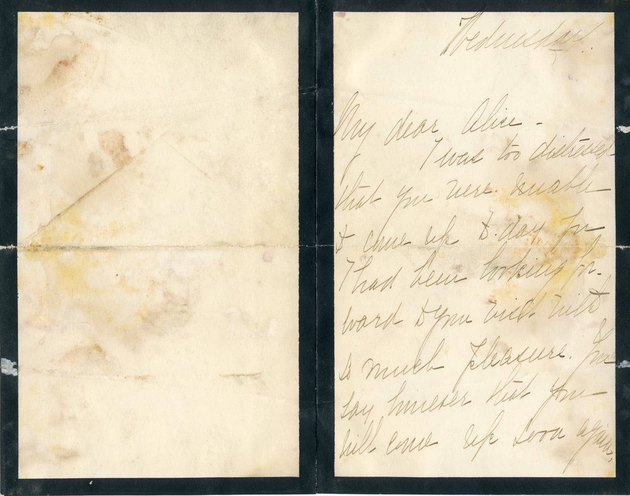 Wednesday My dear Alice - I was too delighted that you were unable & came up today for I had been looking forward to you with such much pleasure. I say truerer that you will come up soon again.