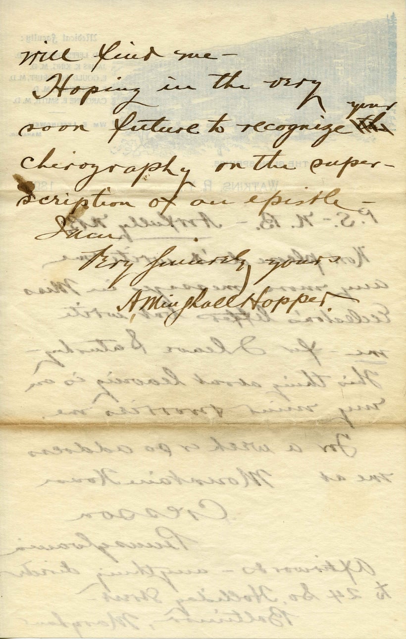 will find me— Hoping in the very near future to recognize your chirography on the super- scription of an epistle— Lucan. Very sincerely yours, A. Minshall Hopper.