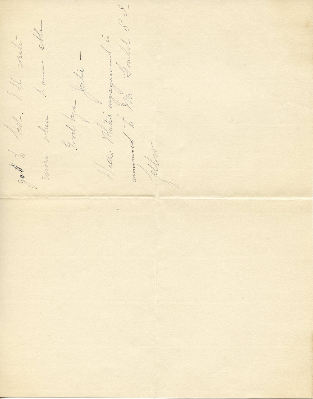 go to bed. I'll write more when I am able. Good bye - Julia - Hollis White's engagement is commenced to Mr. Hall S.J. Felber -