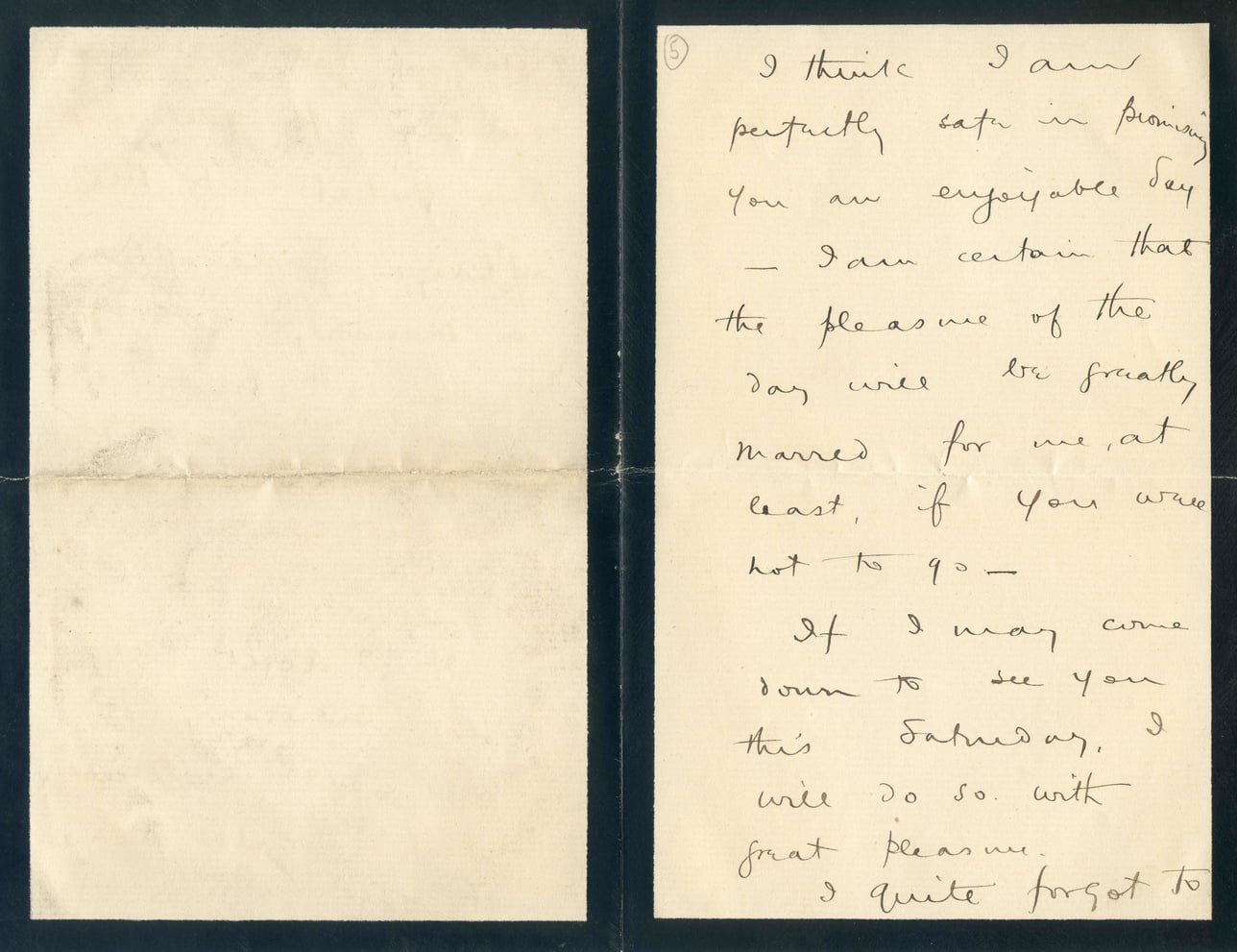 I think I am perfectly safe in promising you an enjoyable day—I am certain that the pleasure of the day will be greatly marred for me, at least, if you were not to go. If I may come down to see you this Saturday, I will do so with great pleasure. I quite forgot to