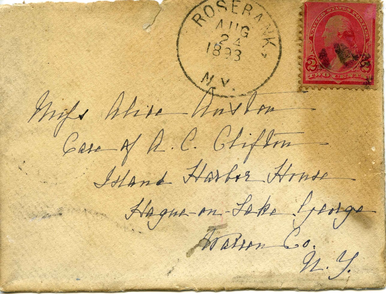Miss Rhine Boston Care of A.C. Clifton Island Harbor House Hague-on-Lake George Watson Co. N.Y.