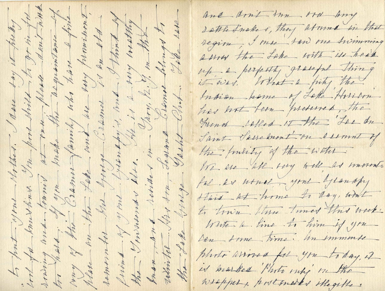 to hunt your method. I have to go in for "hot" for something you need shield, to go in for drawing and painting at 10-4. Please don't mind too much. If you know the acquaintance of any of the creamery family who have a pink plate are the Lake and are very punctual, remember for Mrs. George. Oh! Almost its an old friend. My poor Lyman by it, and I think of the youngsters also. Oh! It is a very loathly season, and activities in Gary, Ky. in this winter. His son, grandson, cousin belonged to the Lake Bridge Yacht Club. If he were and don't run off any little snakes, they stirred in that region, I may see one swimming across the lake with its head up, a perfectly graceful thing it was. What a pity the Indian name of Lake Horizon has not been preserved, the French called it the "See du Saint Sacrement" on account of the fertility of the water. We are all very well as innocent as ever, so what you bungalow this at home today, want to turn these times this week. Write a line to him if you can some time. An immense photo arrived for you today, it is marked 'Photo only' on the wrapper, postmark illegible.