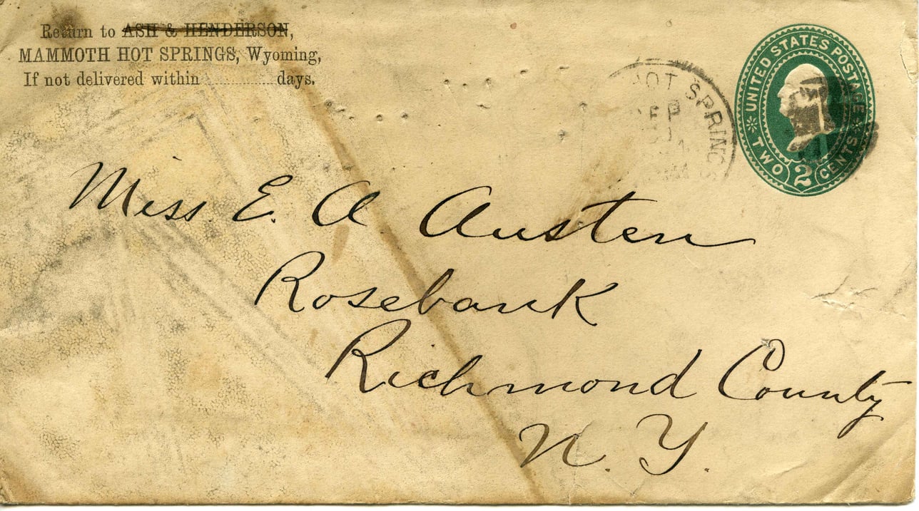 @file_1894_9_sept_1001_butterball_copy_jpg -> image of -> @envelope_1894_09_1001Return to ASH & HENDERSON, MAMMOTH HOT SPRINGS, Wyoming, If not delivered within __________ days. Miss E. A Austen Rosebank Richmond County N.Y.