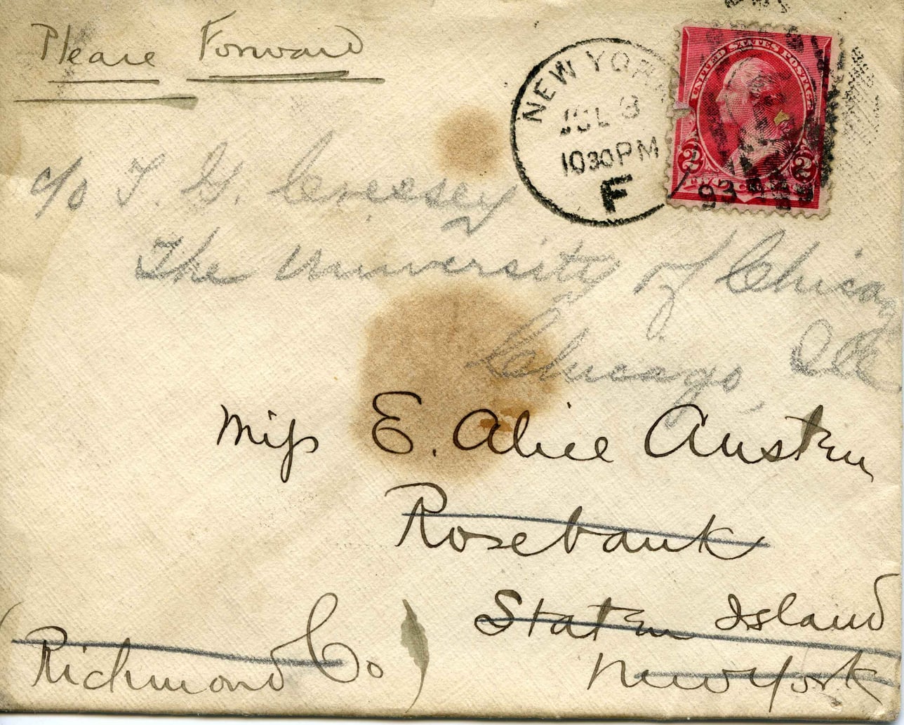 Please Forward c/o F. G. Caressey The University of Chicago Chicago, Ill. Miss E. Alice Austin Rosebank Richmond Co., Staten Island, New York