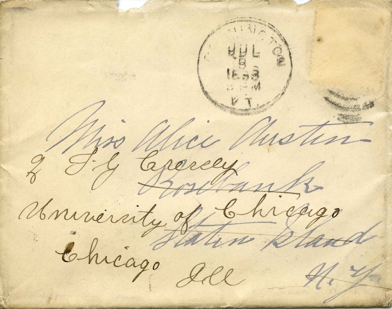@envelope_1893_07_10_3:document {date: @date_1893_07_10, to: @alice_austen, from: @f_g_cresser, address: "Chicago, Ill., The University of Chicago"}