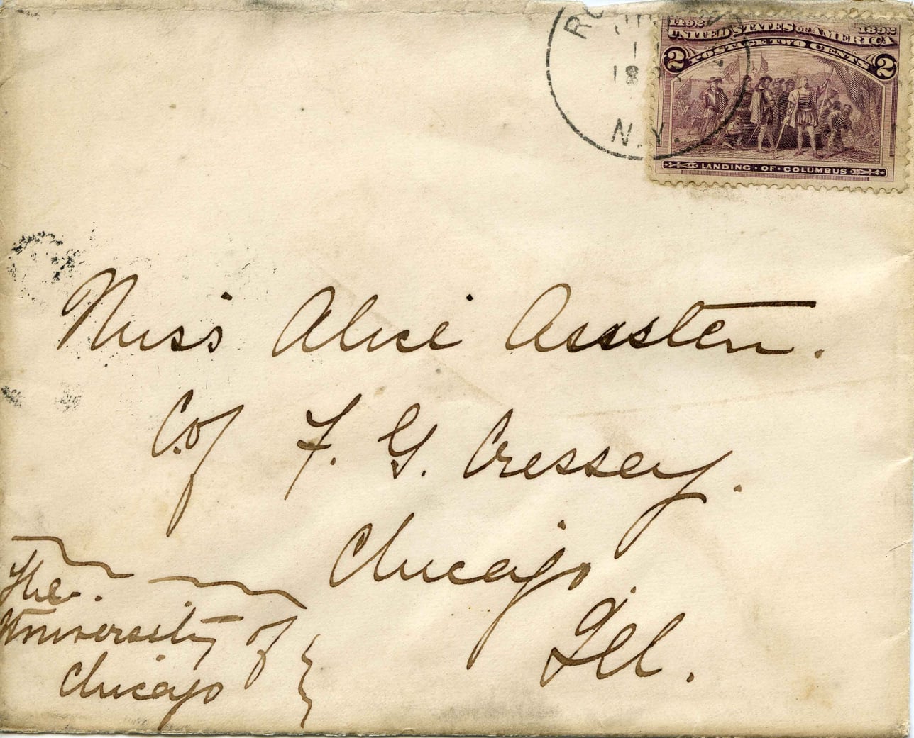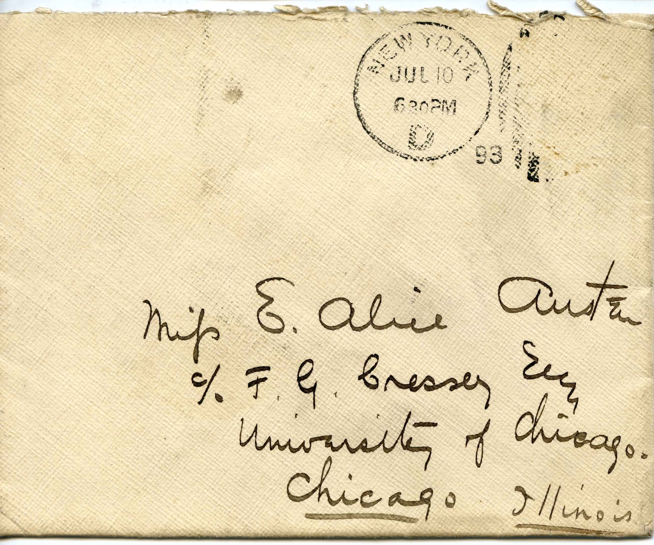 Miss Alice Austen c/o F.G. Cresser Chicago, Ill. The University of Chicago