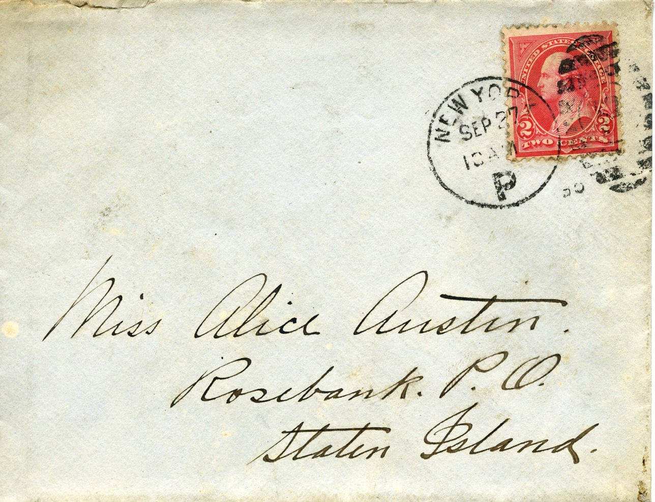 Miss Alice Austin. Rosebank P.O. Staten Island.