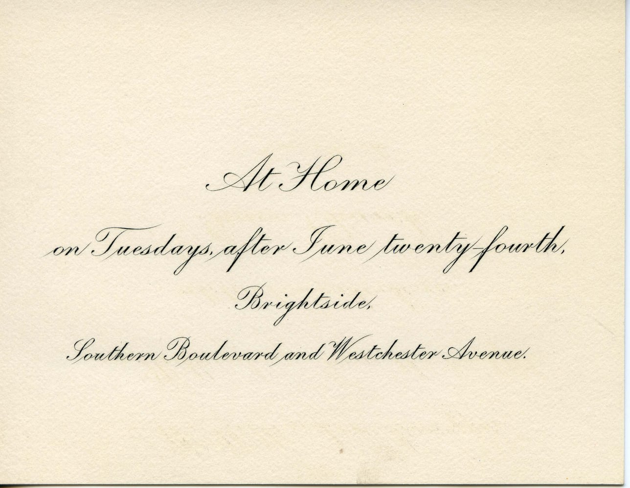 At Home on Tuesdays, after June twenty-fourth, Brightside, Southern Boulevard and Westchester Avenue.