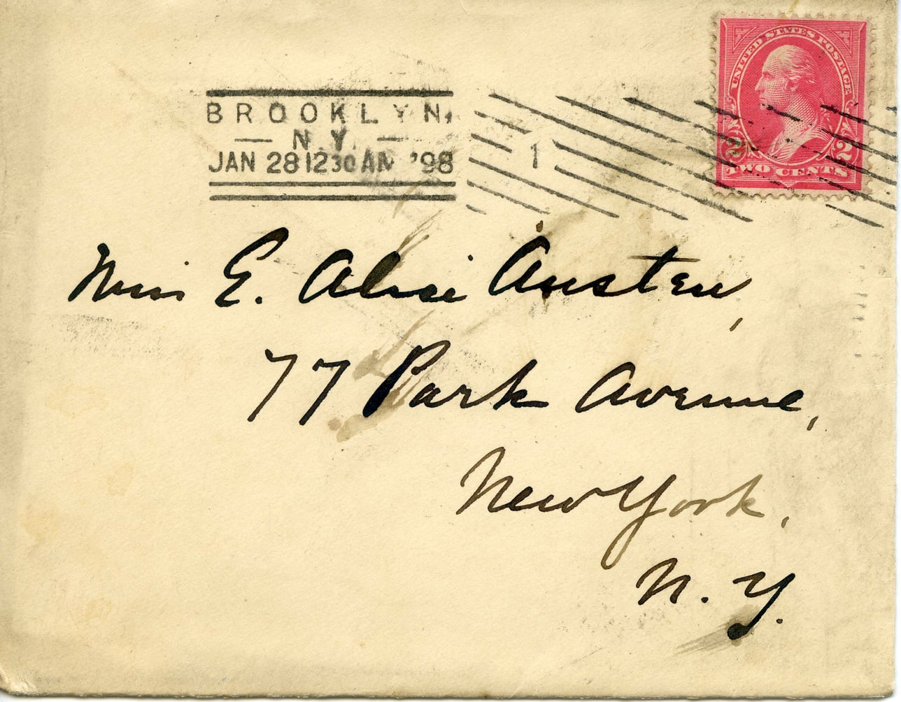 @daisy -> mentioned -> @miss_lawrence {in: @file_1898_1_26_1898_jan_1003_daisy_copy_jpg}BROOKLYN, N.Y. JAN 281230 AN '98 Mrs. E. Alice Austin, 77 Park Avenue, New York, N.Y.
