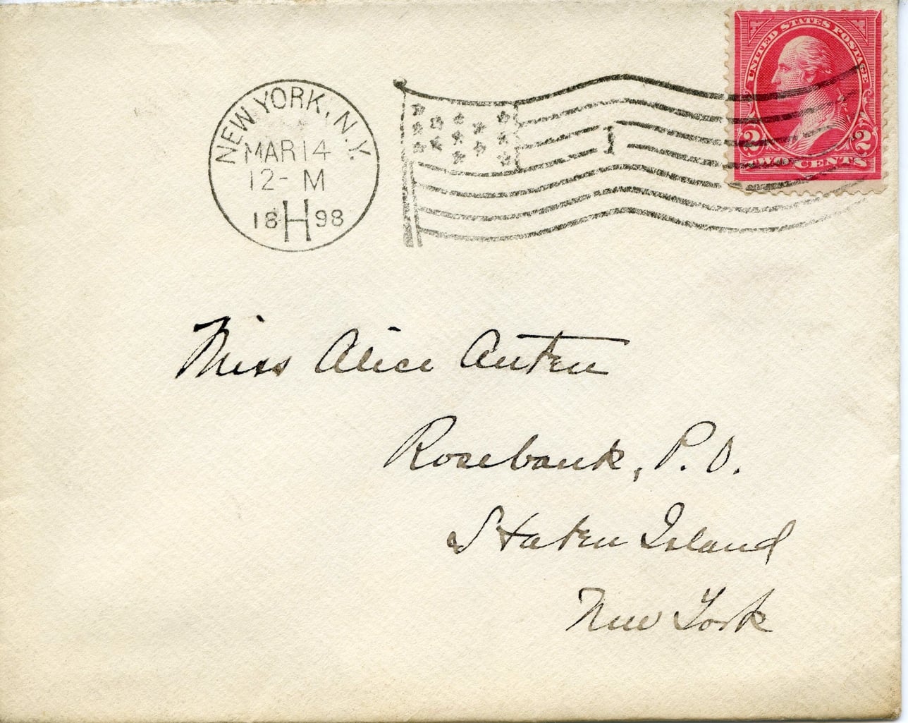 @file_pinax:file {title: "Malvina Martin Correspondence to Alice Austen", creator: @malvina_martin, created: @date_1898_03_14, language: "en", subjects: ["Correspondence","Personal letters","Family updates","Health updates","Social invitations"], description: "Collection of correspondence from Malvina Martin to Alice Austen, discussing family health updates and social invitations.", place: ["Rosebank, Staten Island, New York","63 East Fifty-sixth Street, New York"]}
